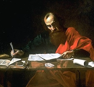 Paulus i færd med at skrive et af sine breve, af Valentin de Boulogne/Nicolas Tournier, 1620